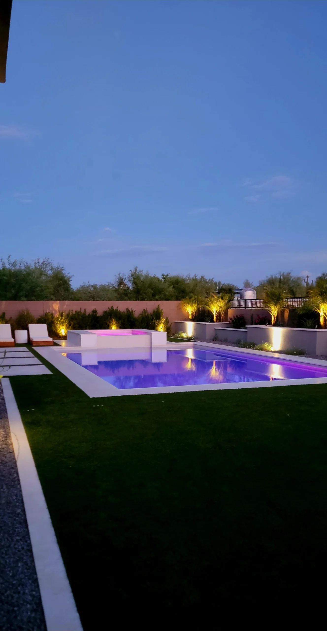 We offer a variety of landscaping services including turf installation, paver laying, irrigation systems, outdoor lighting, as well as planting trees, cacti, and additional lighting solutions.